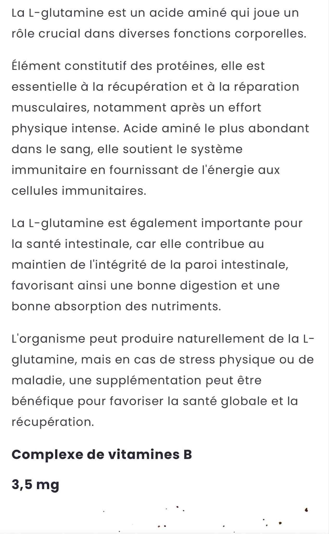 La L-glutamine, un acide aminé impliqué dans le confort digestif.